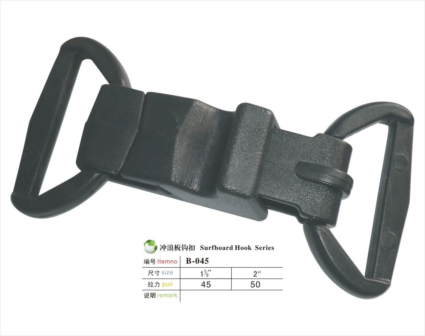编号:B-045规格:1-1/4" 2" 材质:POM/PA说明:该款扣具操作方便,耐用结实.适用于相机包,电脑包等背包。申明:我公司所生产的产品主要间接面对国外市场。所有产品可通过欧美最低测试标准EN71-3(8大重金属测试)。当然,我们也可根据客户的要求,生产符合国际标准的ROHS测试以及最新的邻苯二钾酸盐REACH测试的标准。