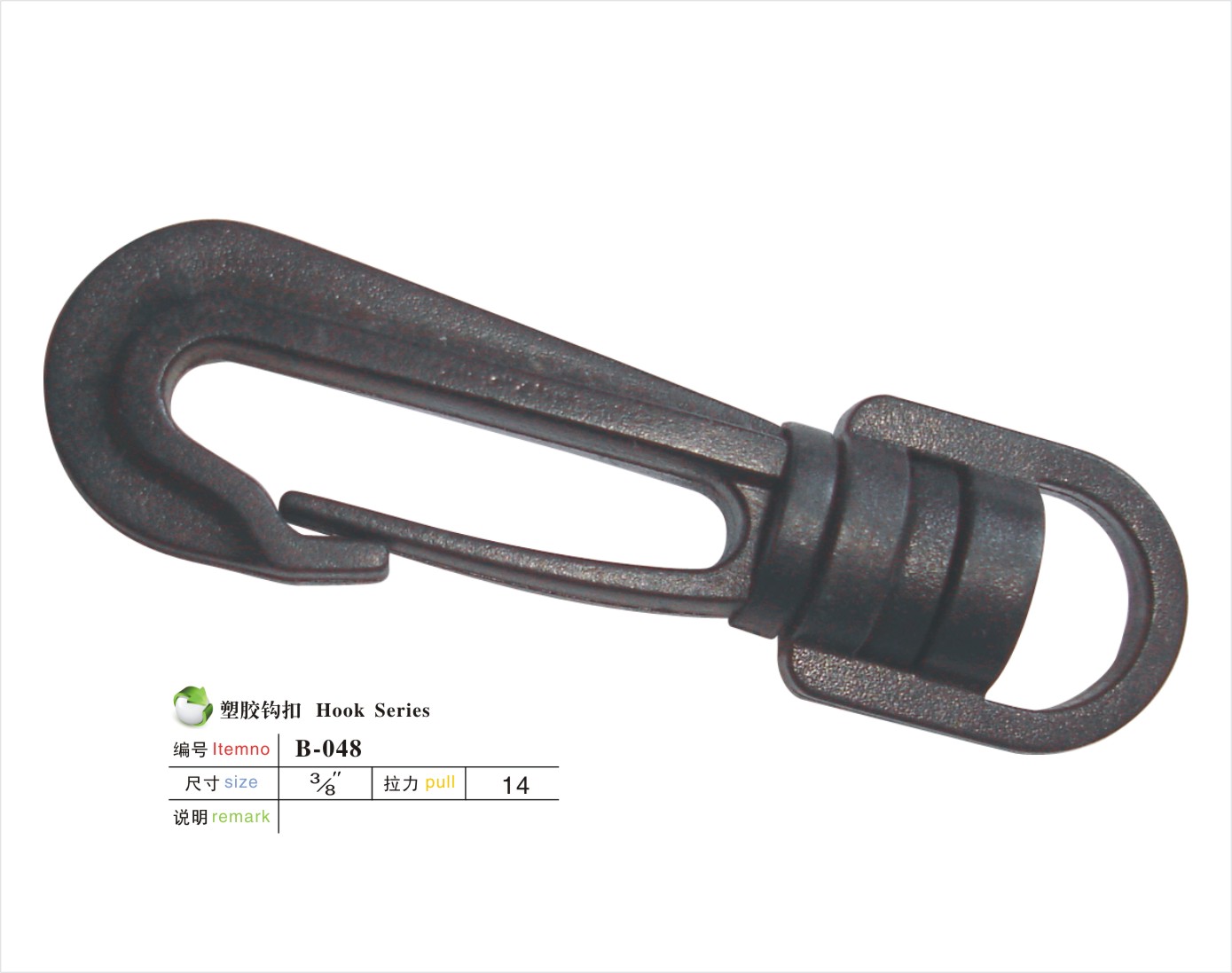 编号:B-048规格:3/8" 材质:POM/PA说明:该款扣具操作方便,耐用结实.适用于相机包,电脑包等背包。申明:我公司所生产的产品主要间接面对国外市场。所有产品可通过欧美最低测试标准EN71-3(8大重金属测试)。当然,我们也可根据客户的要求,生产符合国际标准的ROHS测试以及最新的邻苯二钾酸盐REACH测试的标准。