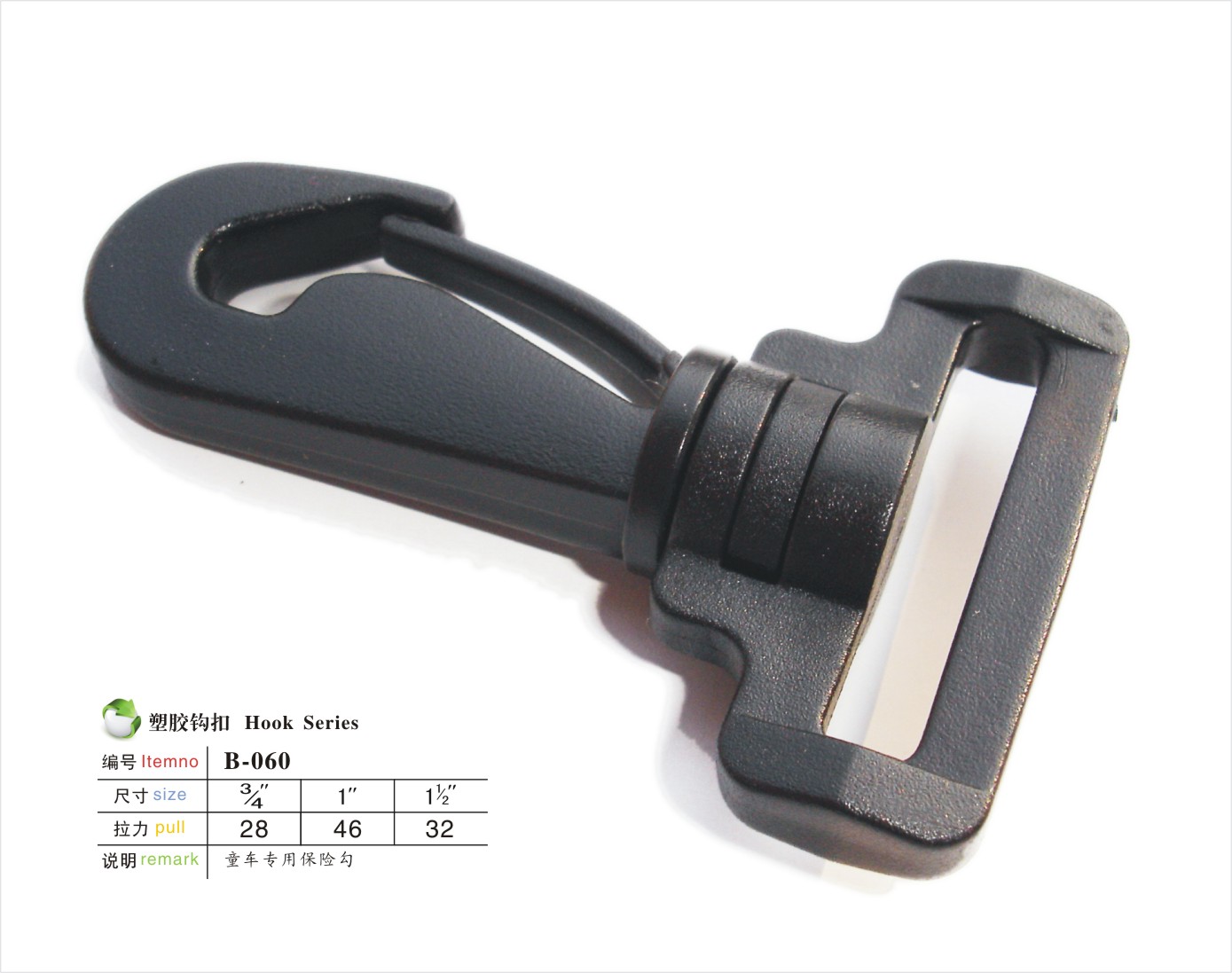 编号:B-060规格: 3/4" 1" 1-1/2" 材质:POM/PA说明:该款扣具操作方便,耐用结实.适用于童车,背包等。申明:我公司所生产的产品主要间接面对国外市场。所有产品可通过欧美最低测试标准EN71-3(8大重金属测试)。当然,我们也可根据客户的要求,生产符合国际标准的ROHS测试以及最新的邻苯二钾酸盐REACH测试的标准。