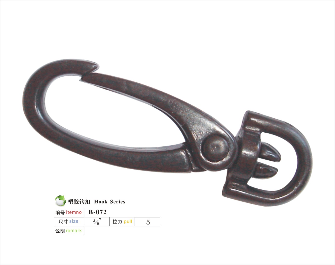 编号:B-072规格:3/8" 材质:POM/PA说明:该款扣具操作方便,耐用结实.适用于各式相机包/电脑包等系列包袋。申明:我公司所生产的产品主要间接面对国外市场。所有产品可通过欧美最低测试标准EN71-3(8大重金属测试)。当然,我们也可根据客户的要求,生产符合国际标准的ROHS测试以及最新的邻苯二钾酸盐REACH测试的标准。