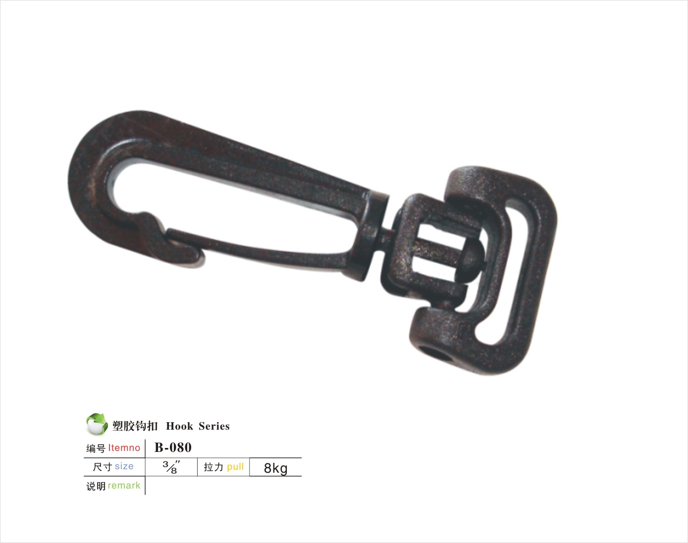 编号:B-080规格:3/8" 材质:POM/PA说明:该款扣具操作方便,耐用结实.适用于各式相机包/电脑包或者婴儿手推车。申明:我公司所生产的产品主要间接面对国外市场。所有产品可通过欧美最低测试标准EN71-3(8大重金属测试)。当然,我们也可根据客户的要求,生产符合国际标准的ROHS测试以及最新的邻苯二钾酸盐REACH测试的标准。