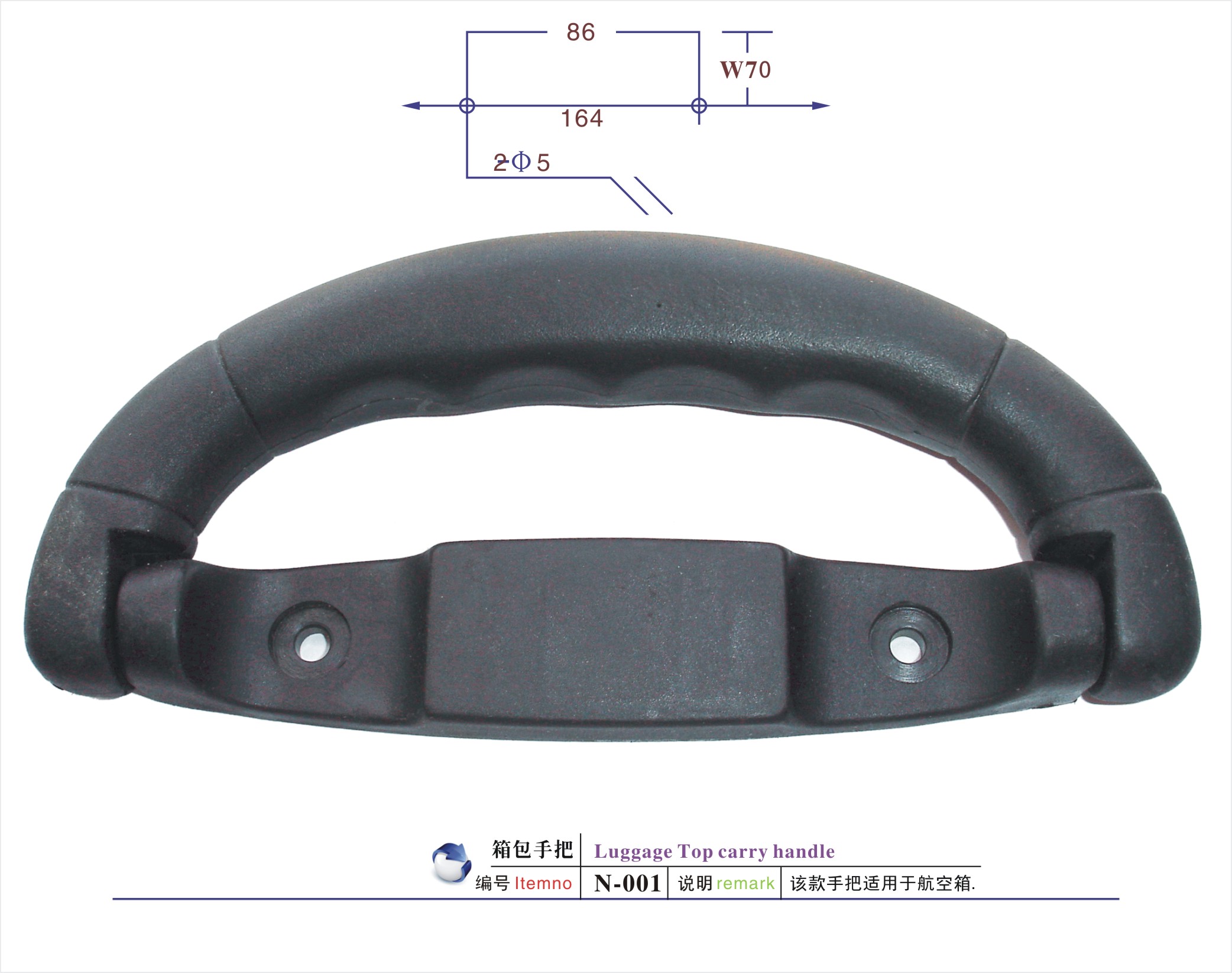 编号:N-001规格:如图材质:PP/POM/PVC/TPR说明:该款手把适用于航空箱/工具箱/铝箱/拉杆箱/行李箱/背包等申明:我公司所生产的产品主要间接面对国外市场。所有产品可通过欧美最低测试标准EN71-3(8大重金属测试)。当然,我们也可根据客户的要求,生产符合国际标准的ROHS测试以及最新的邻苯二钾酸盐REACH测试的标准。