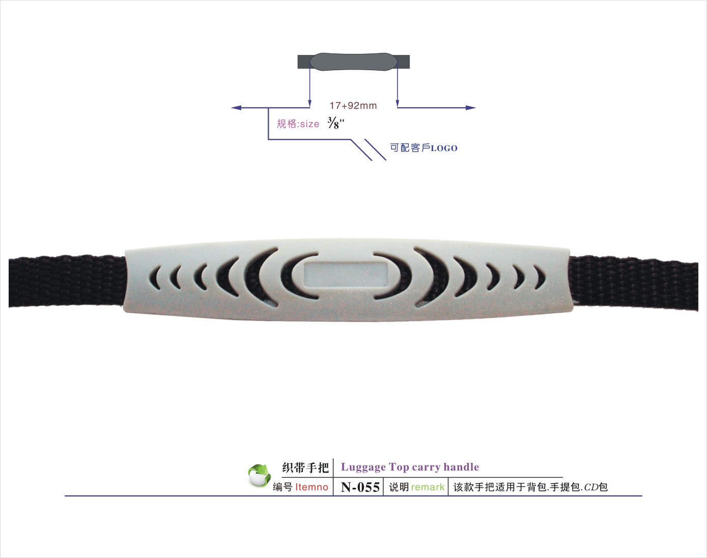 说明:该款手把适用于航空箱/工具箱/相机包/登山包/童车/CD袋/拉杆箱/行李箱/背包等