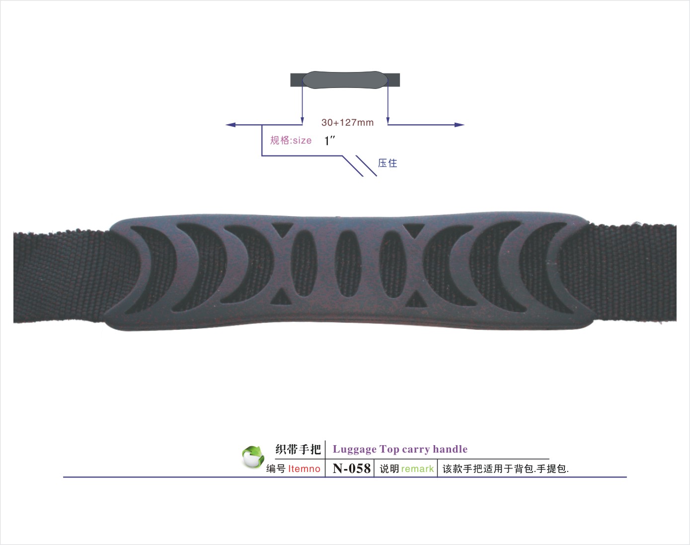 说明:该款手把适用于航空箱/工具箱/相机包/登山包/童车/CD袋/拉杆箱/行李箱/背包等
