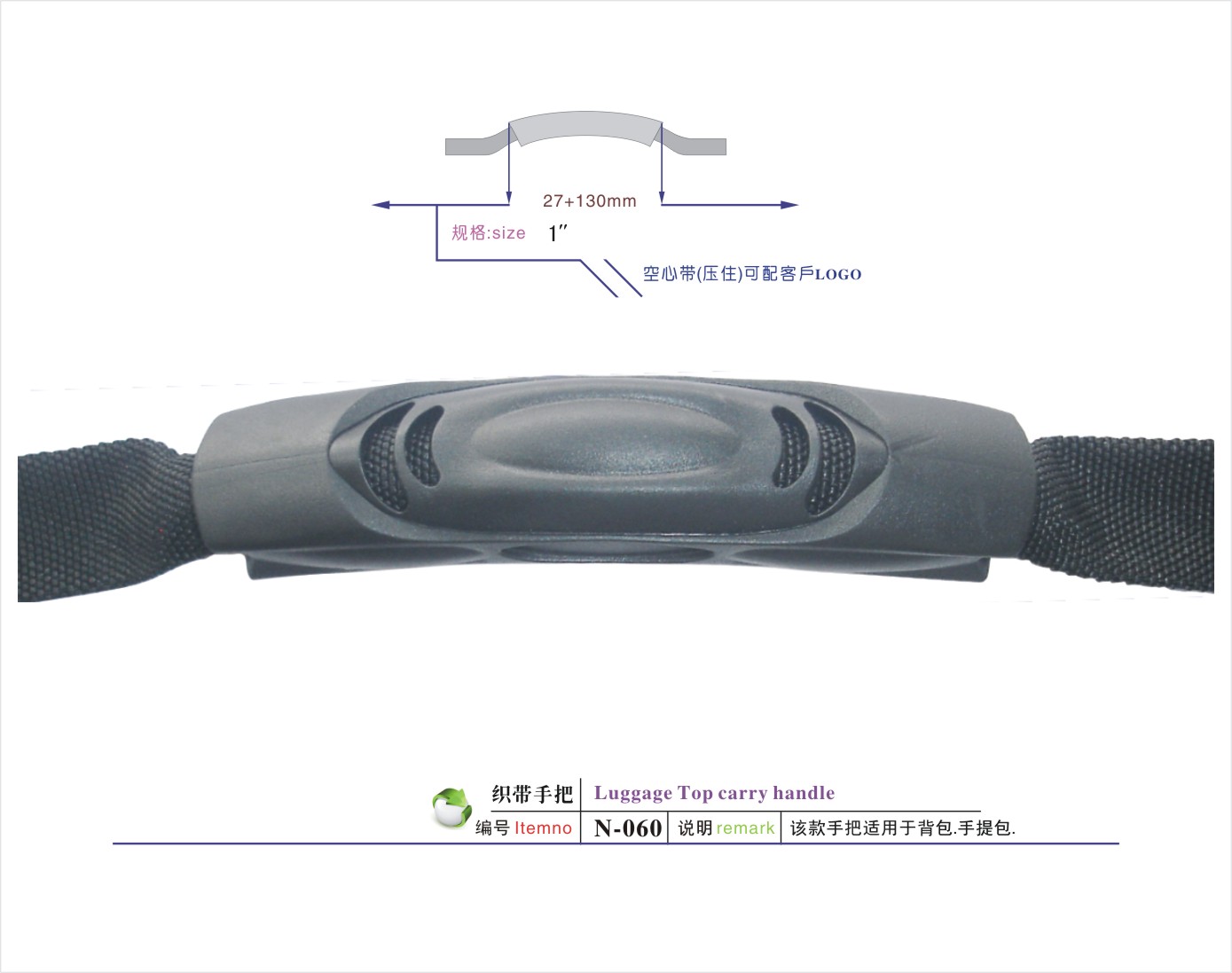 说明:该款手把适用于航空箱/工具箱/相机包/登山包/童车/CD袋/拉杆箱/行李箱/背包等
