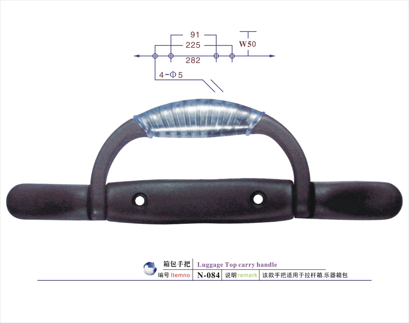 说明:该款手把适用于航空箱/工具箱/相机包/登山包/童车/CD袋/拉杆箱/行李箱/背包等