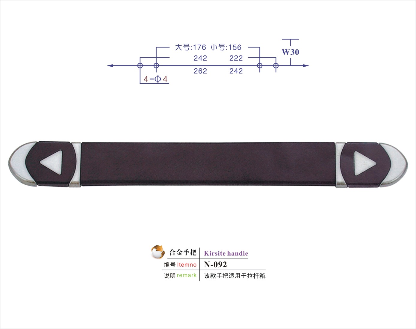 说明:该款手把适用于航空箱/工具箱/相机包/登山包/童车/CD袋/拉杆箱/行李箱/背包等