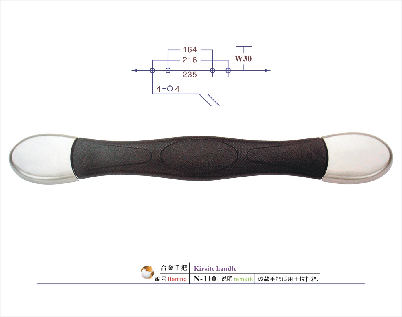 说明:该款手把适用于航空箱/工具箱/相机包/登山包/童车/CD袋/拉杆箱/行李箱/背包等