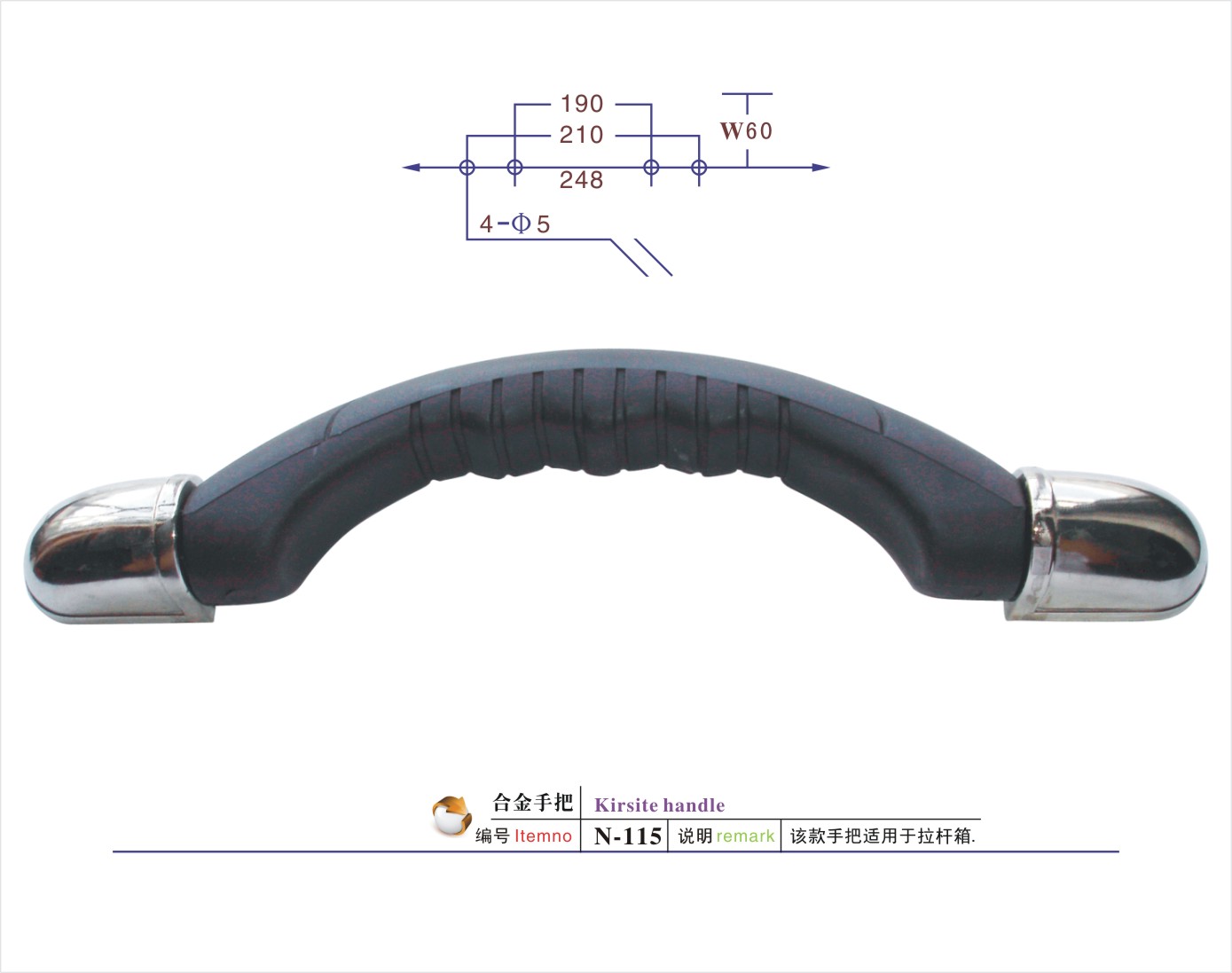 说明:该款手把适用于航空箱/工具箱/相机包/登山包/童车/CD袋/拉杆箱/行李箱/背包等
