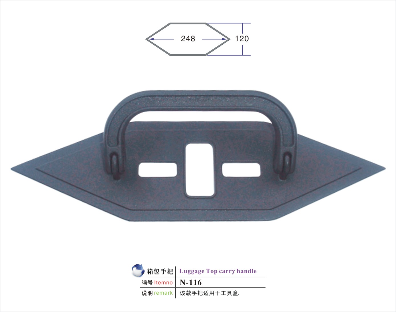 说明:该款手把适用于航空箱/工具箱/相机包/登山包/童车/CD袋/拉杆箱/行李箱/背包等