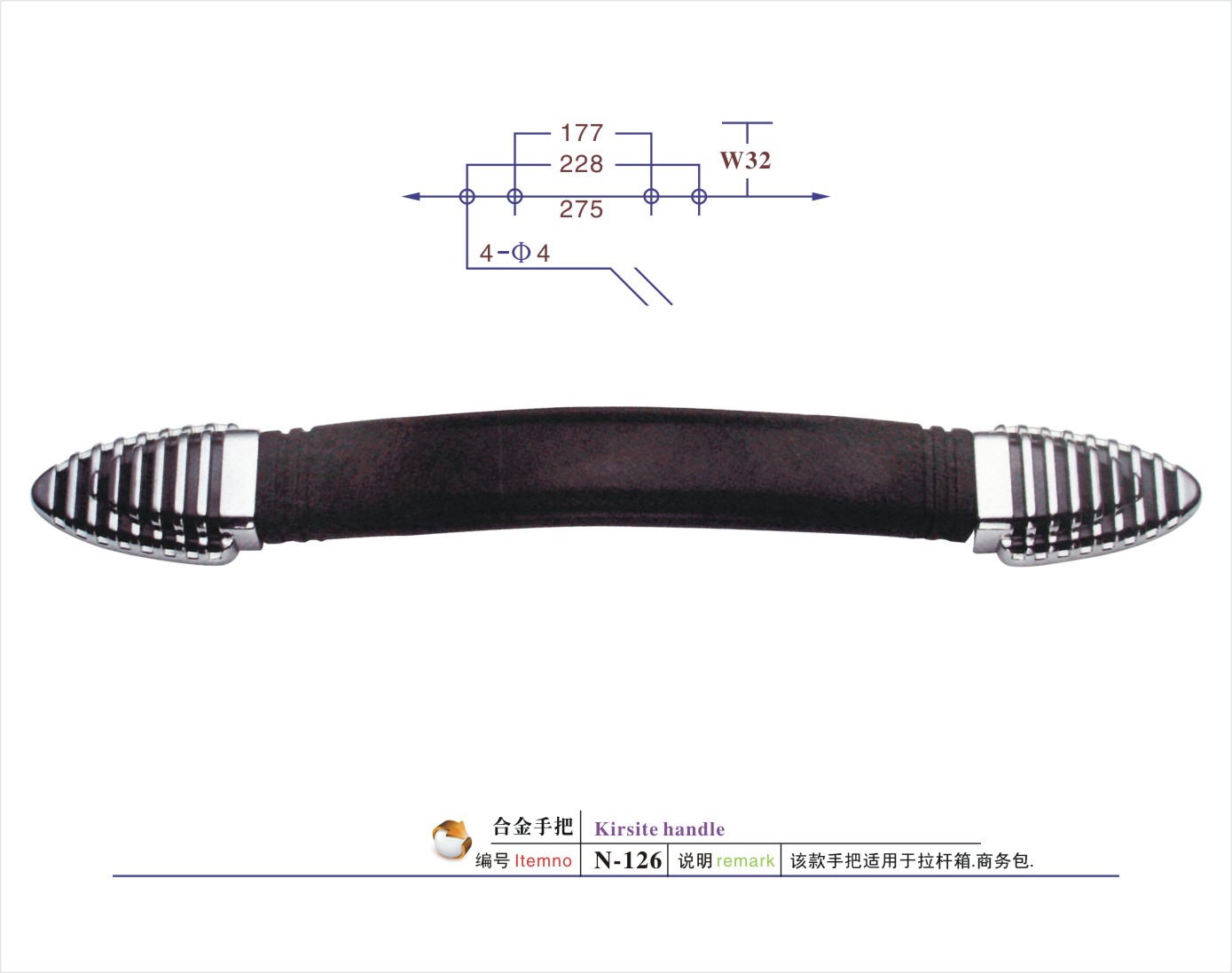 说明:该款手把适用于航空箱/工具箱/相机包/登山包/童车/CD袋/拉杆箱/行李箱/背包等