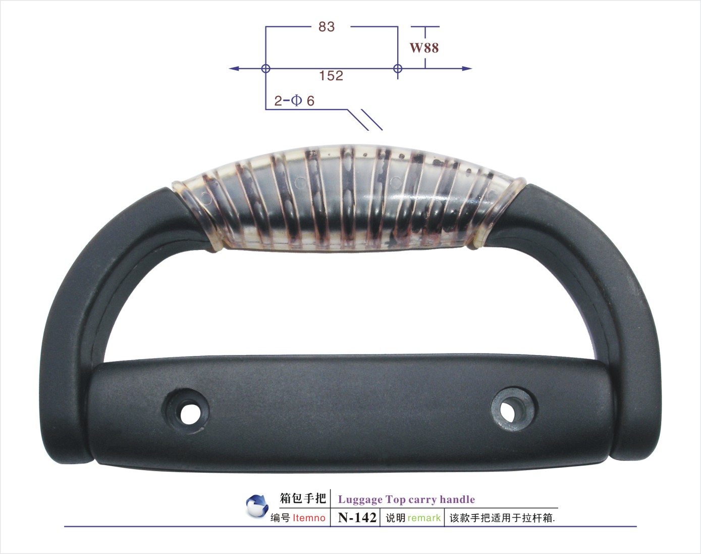 说明:该款手把适用于航空箱/工具箱/相机包/登山包/童车/CD袋/拉杆箱/行李箱/背包等