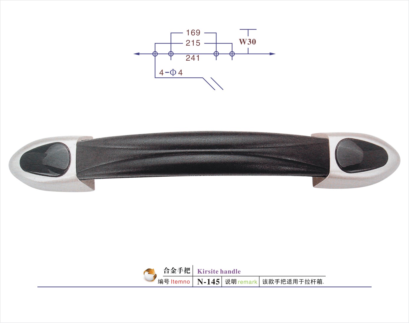 说明:该款手把适用于航空箱/工具箱/相机包/登山包/童车/CD袋/拉杆箱/行李箱/背包等