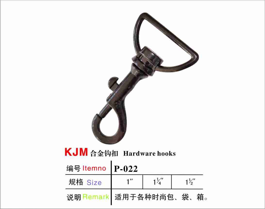 编号:P-022规格:1" 1-1/4" 1-1/2"材质:锌合金说明:该款狗扣适用于各款工具箱包、行李包袋、电脑包等。申明:我公司所生产的产品主要间接面对国外市场。所有产品可处理为无呖呖,通过低毒环保测试标准!也可过检针。