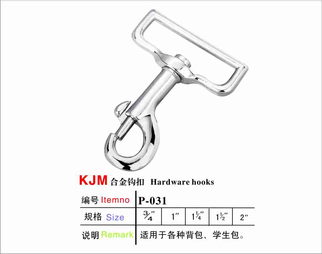 编号:P-031规格:3/4" 1" 1-1/4" 1-1/2" 2"材质:锌合金说明:该款狗扣适用于各款工具箱包、行李包袋、电脑包等。申明:我公司所生产的产品主要间接面对国外市场。所有产品可处理为无呖呖,通过低毒环保测试标准!也可过检针。