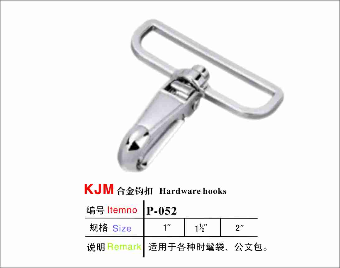 编号:P-052规格: 1" 1-1/2" 2"材质:锌合金说明:该款狗扣适用于各款工具箱包、行李包袋、电脑包等。申明:我公司所生产的产品主要间接面对国外市场。所有产品可处理为无呖呖,通过低毒环保测试标准!也可过检针。