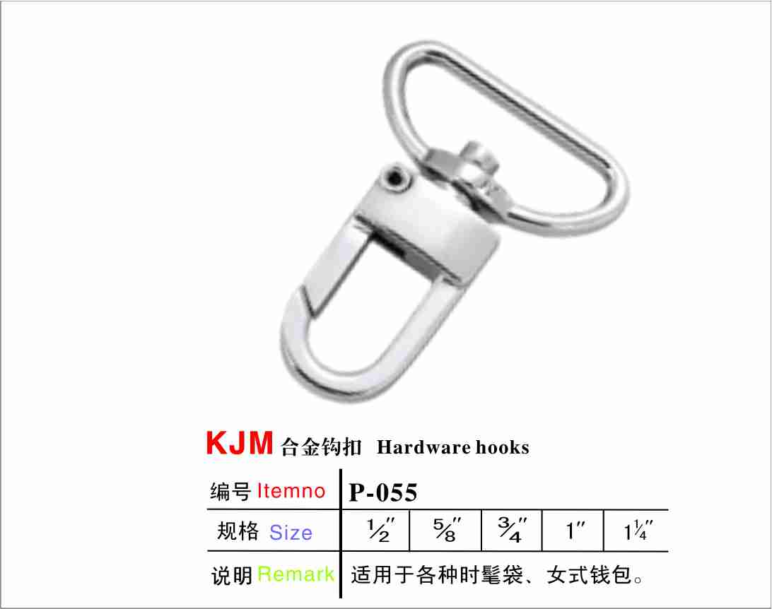 编号:P-055规格:1/2" 5/8" 3/4" 1"材质:锌合金说明:该款狗扣适用于各款工具箱包、行李包袋、电脑包等。申明:我公司所生产的产品主要间接面对国外市场。所有产品可处理为无呖呖,通过低毒环保测试标准!也可过检针。