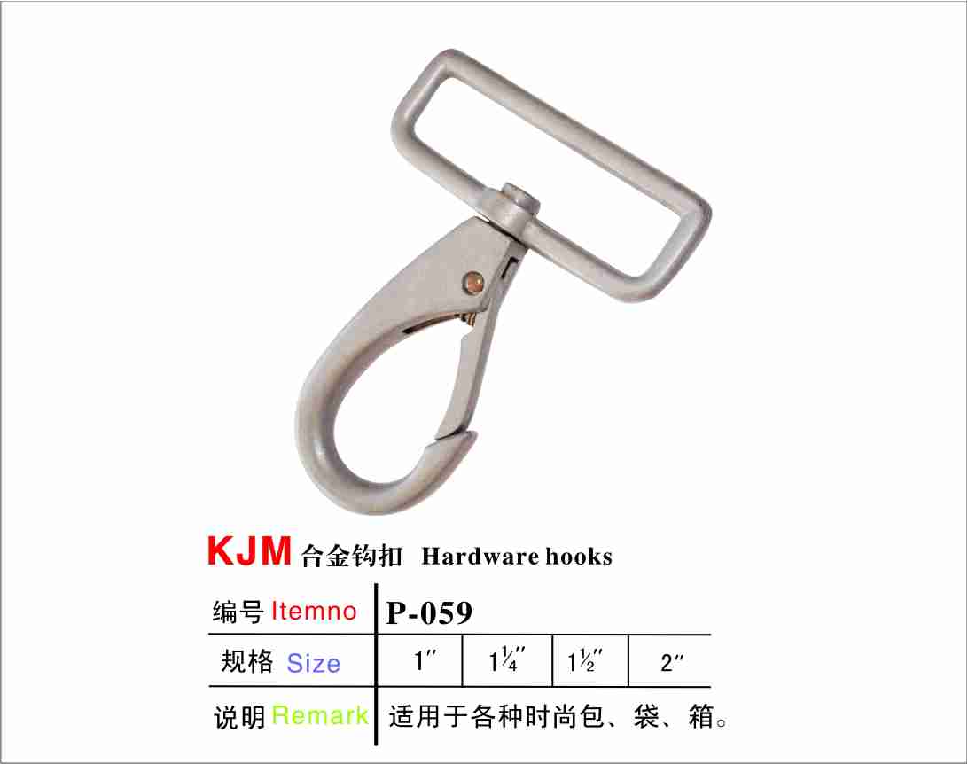 编号:P-059规格:1" 1-1/4" 1-1/2" 2"材质:锌合金说明:该款狗扣适用于各款工具箱包、行李包袋、电脑包等。申明:我公司所生产的产品主要间接面对国外市场。所有产品可处理为无呖呖,通过低毒环保测试标准!也可过检针。