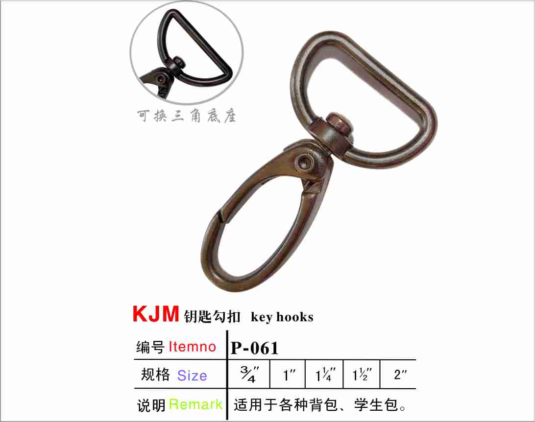 编号:P-061规格:3/4" 1" 1-1/4" 1-1/2" 2"材质:锌合金说明:该款狗扣适用于各款工具箱包、行李包袋、电脑包等。申明:我公司所生产的产品主要间接面对国外市场。所有产品可处理为无呖呖,通过低毒环保测试标准!也可过检针。