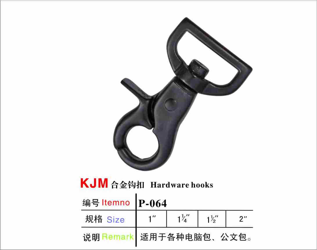 编号:P-064规格:1" 1-1/4" 1-1/2" 2"材质:锌合金说明:该款狗扣适用于各款工具箱包、行李包袋、电脑包等。申明:我公司所生产的产品主要间接面对国外市场。所有产品可处理为无呖呖,通过低毒环保测试标准!也可过检针。